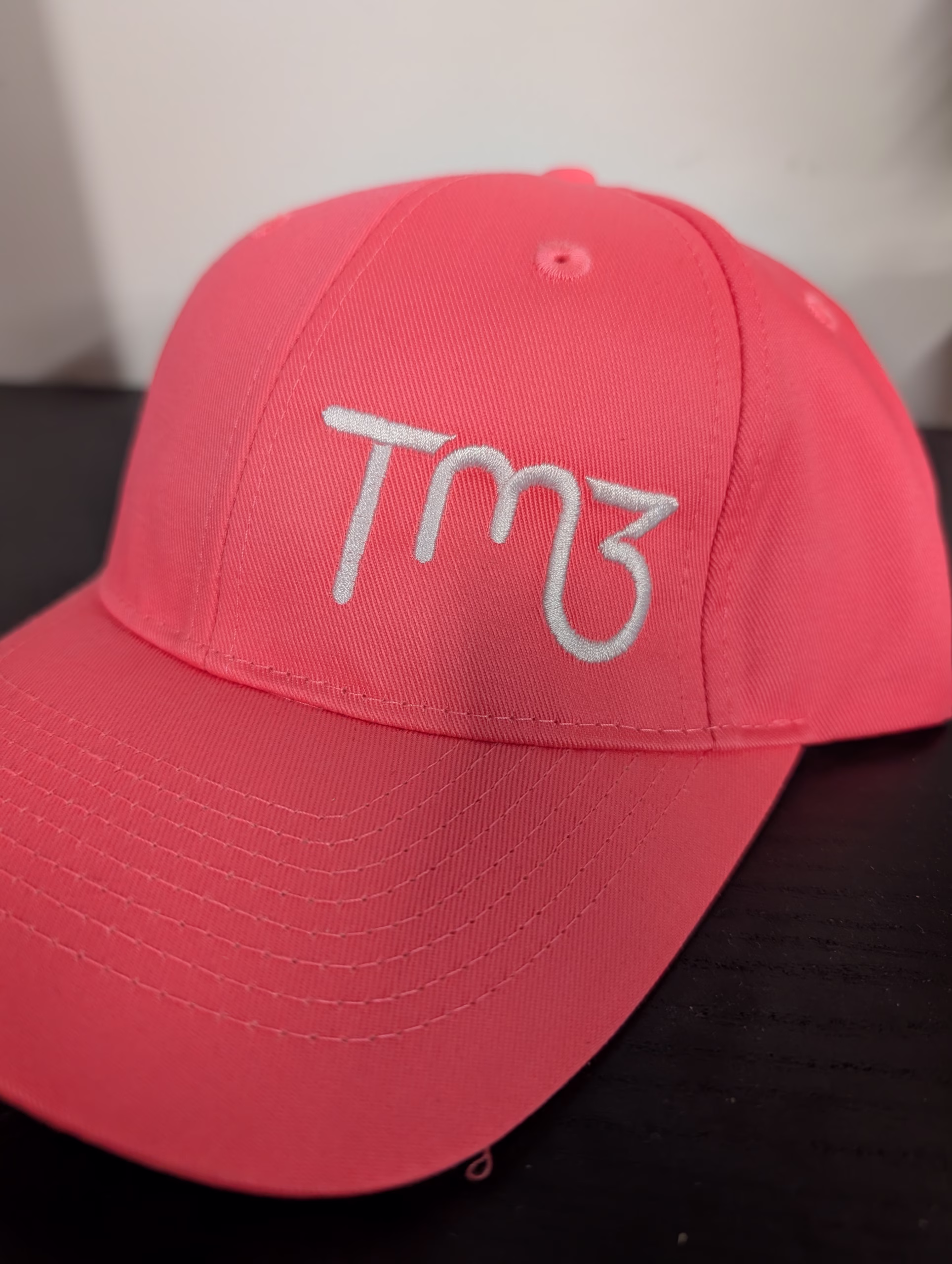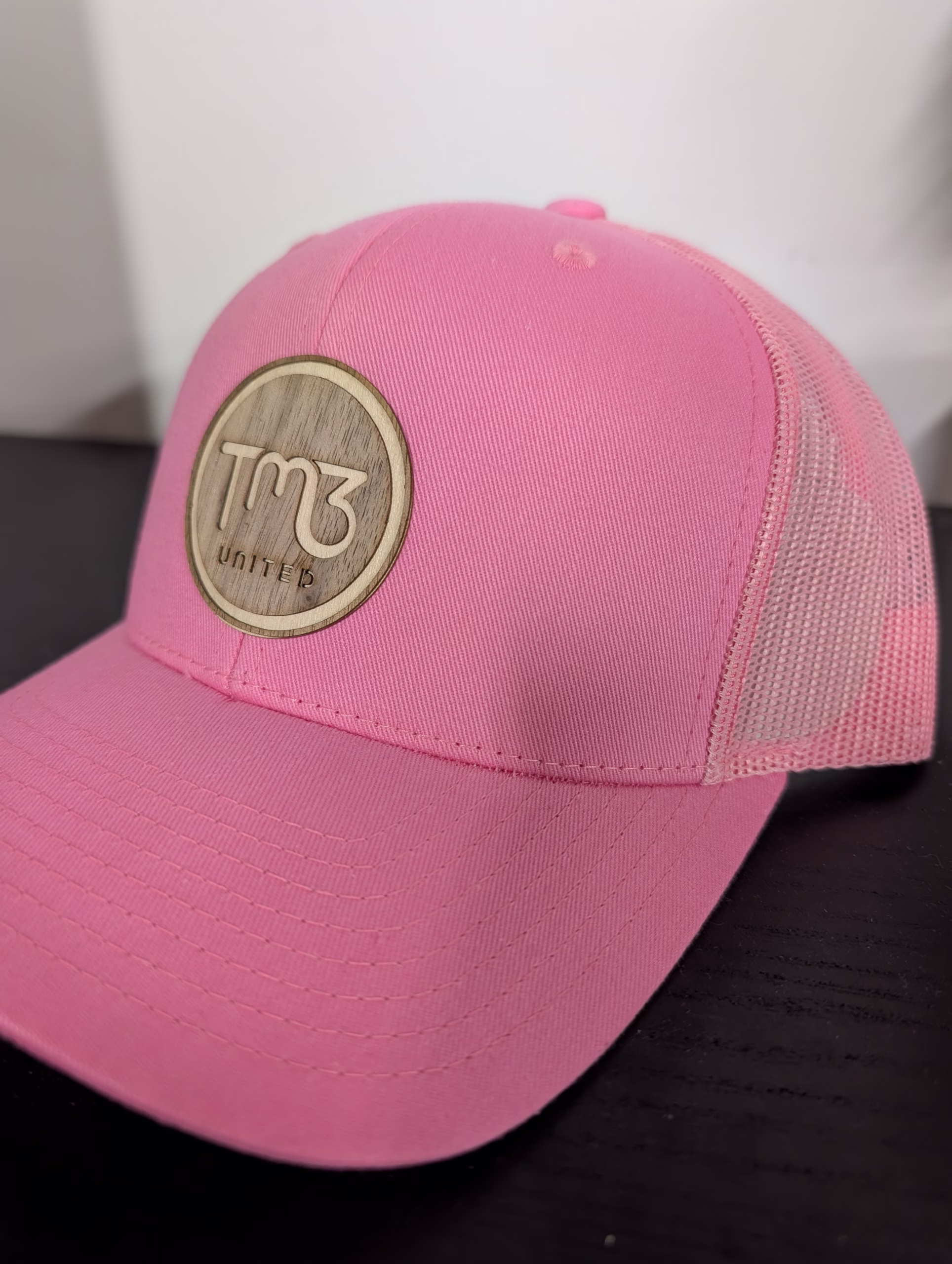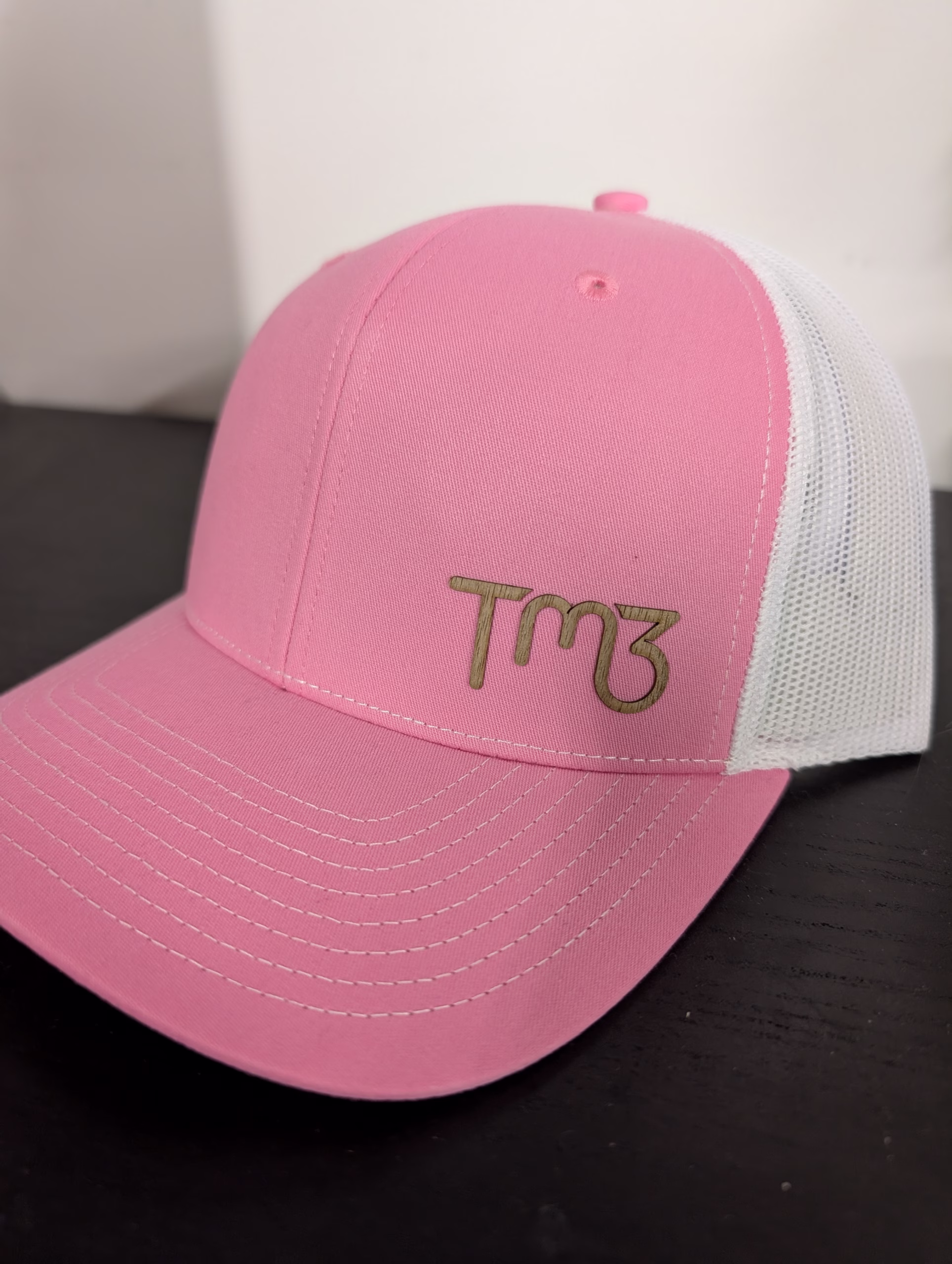 Pink and White Hat with Wooden TM3 – Left